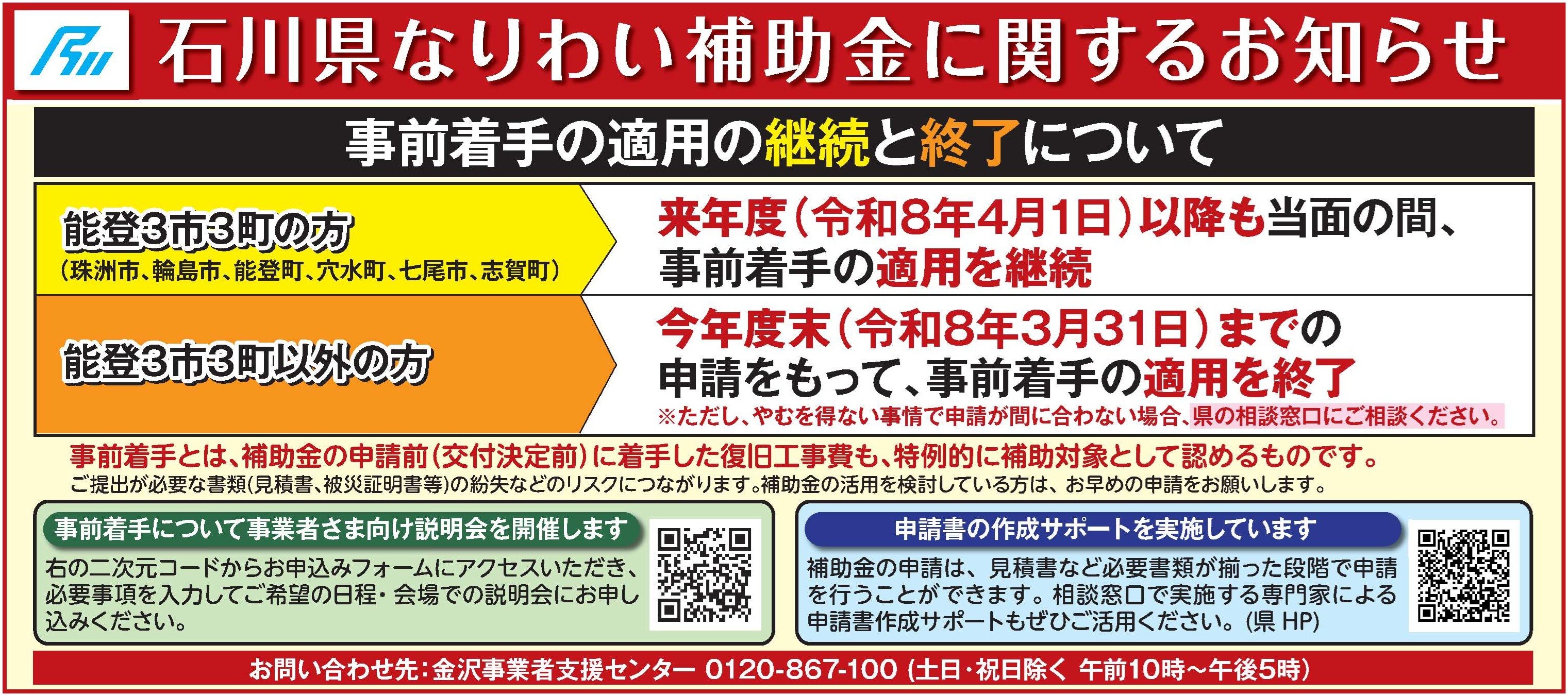 なりわい再建支援補助金・事前着手の適用の継続と終了について
