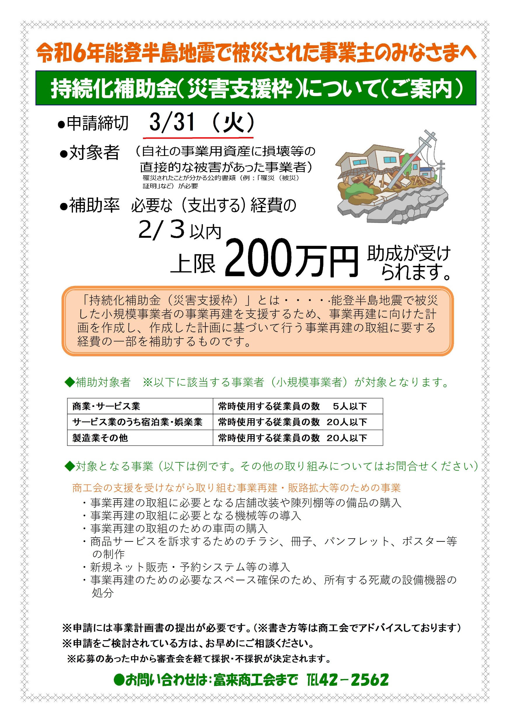 【公募開始】小規模事業者持続化補助金 一般型 災害支援枠(令和6年能登半島地震等)