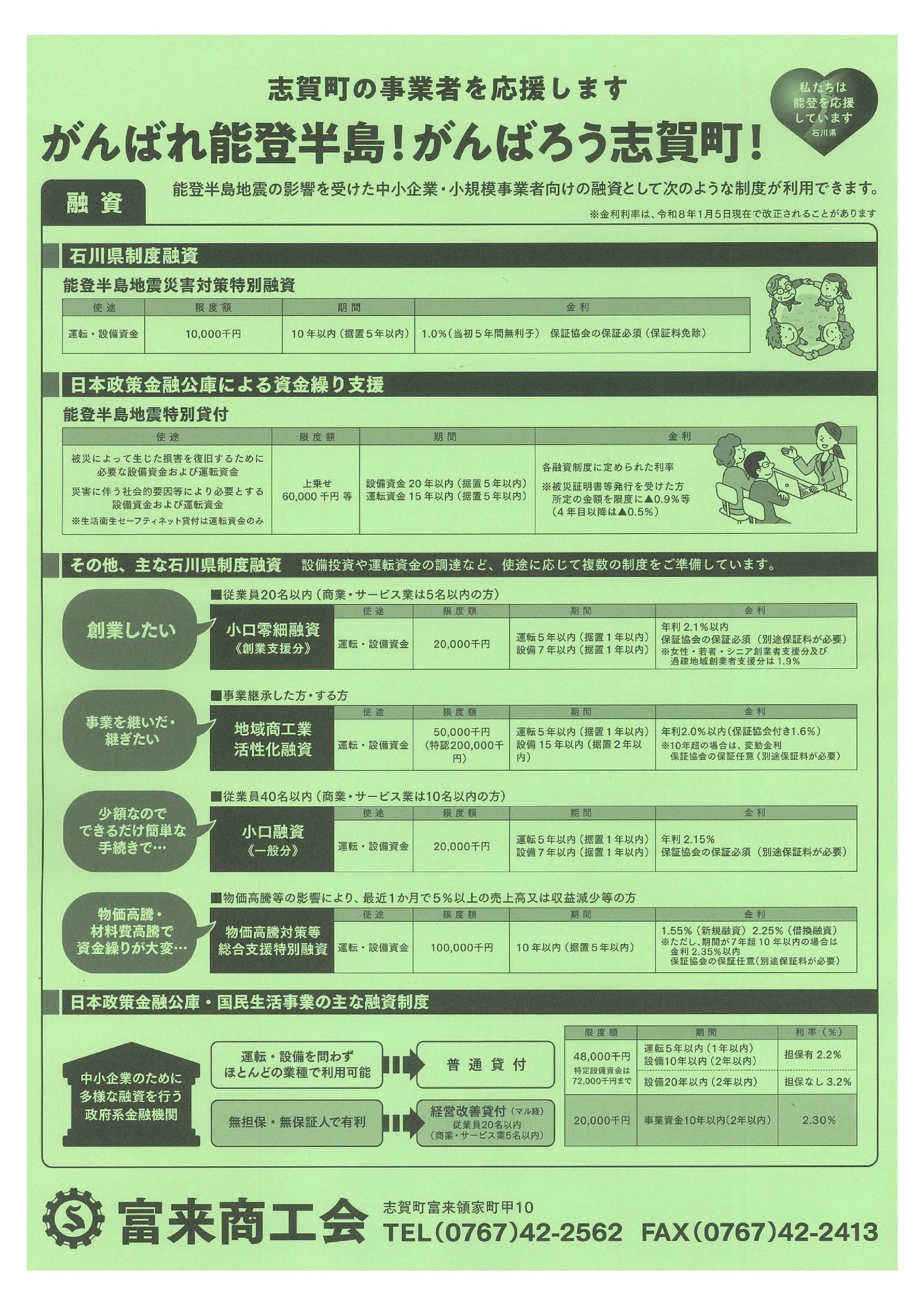 能登半島地震の影響を受けた中小企業・小規模事業者向けの融資制度をご案内します。